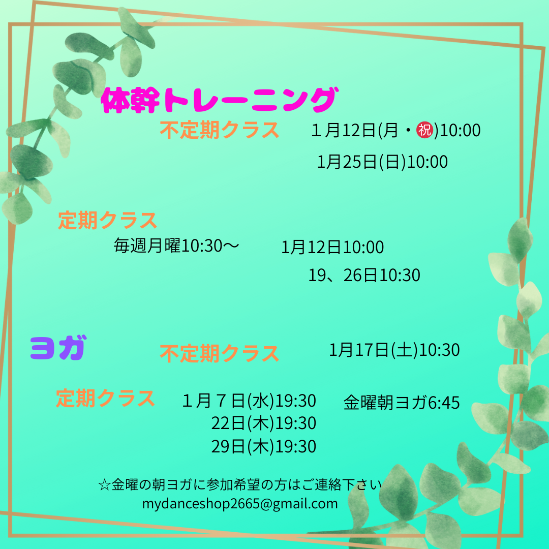 体幹トレーニング&ヨガ スケジュール
